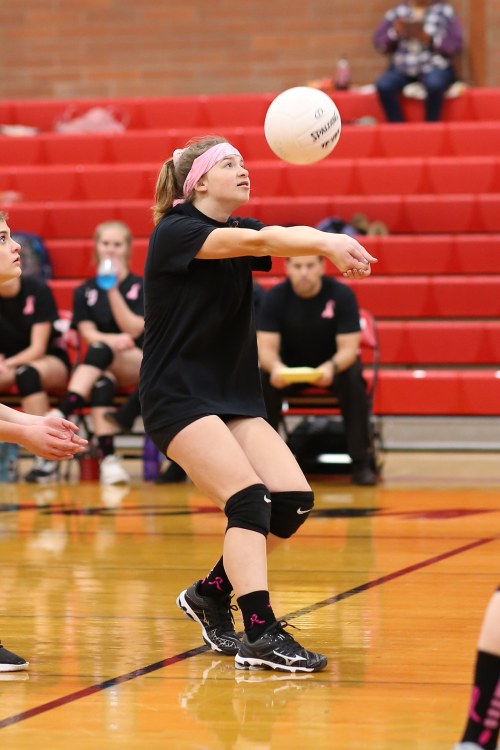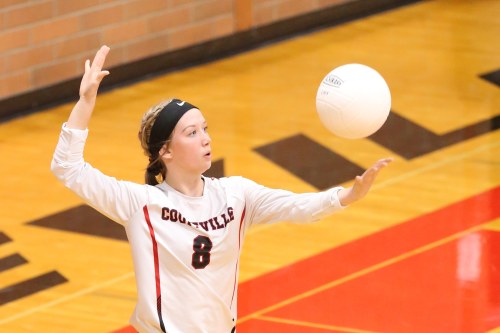 Senior captain Scout Smith delivered 22 assists and four service aces Saturday as Coupeville volleyball mashed Chimacum, improving to 3-0 on the season. (Photo by JohnsPhotos.net)