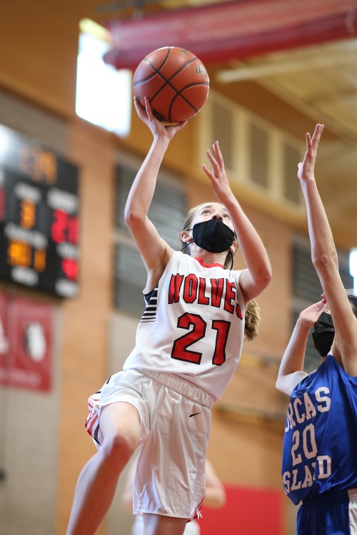 McMillan notched Coupeville’s next two buckets, the first off a steal, the second courtesy a rebound, and up 14-6, the Wolves seemed golden.