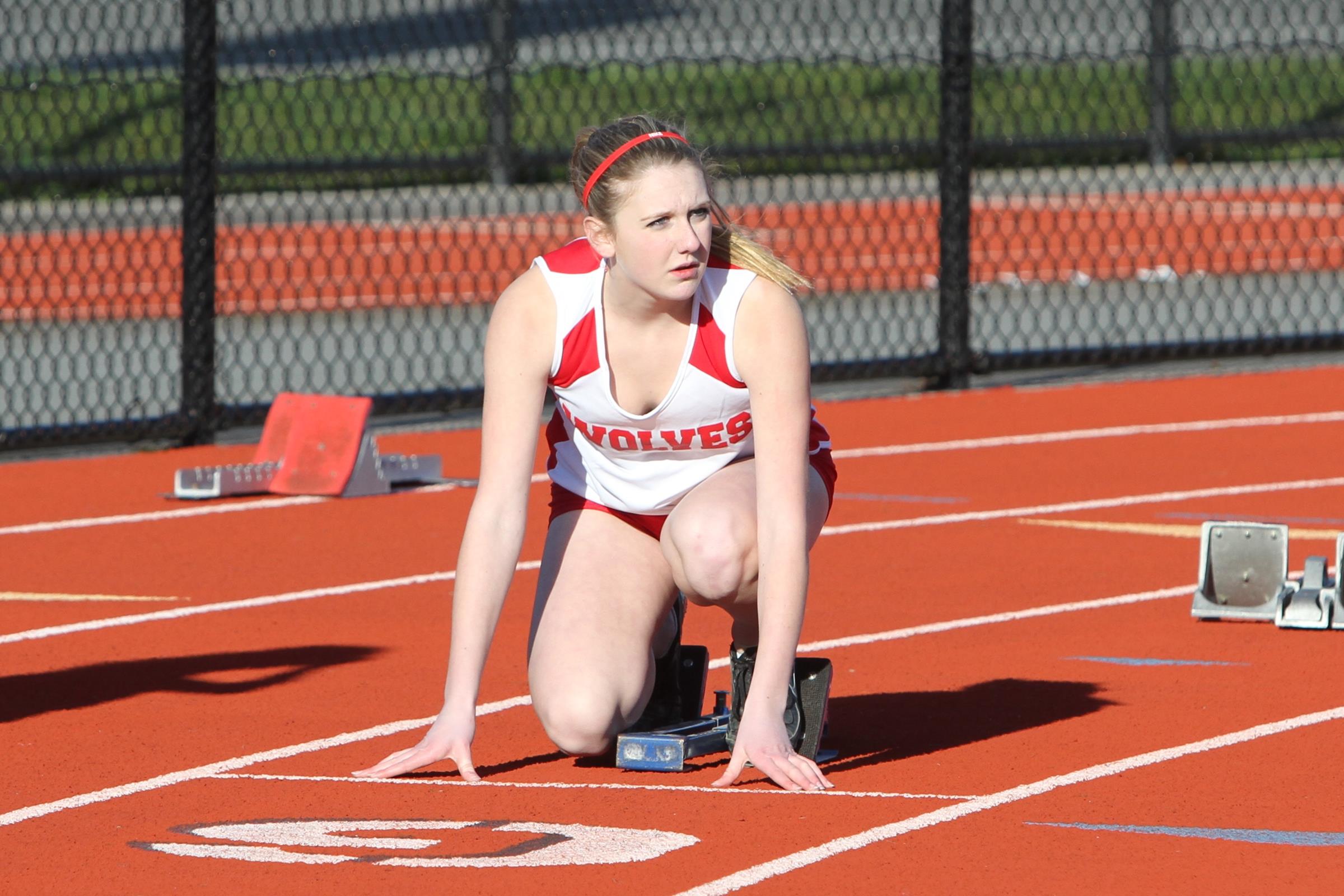 Speedy freshman Lauren Grove waits for the starter’s gun. (John Fisken photos)