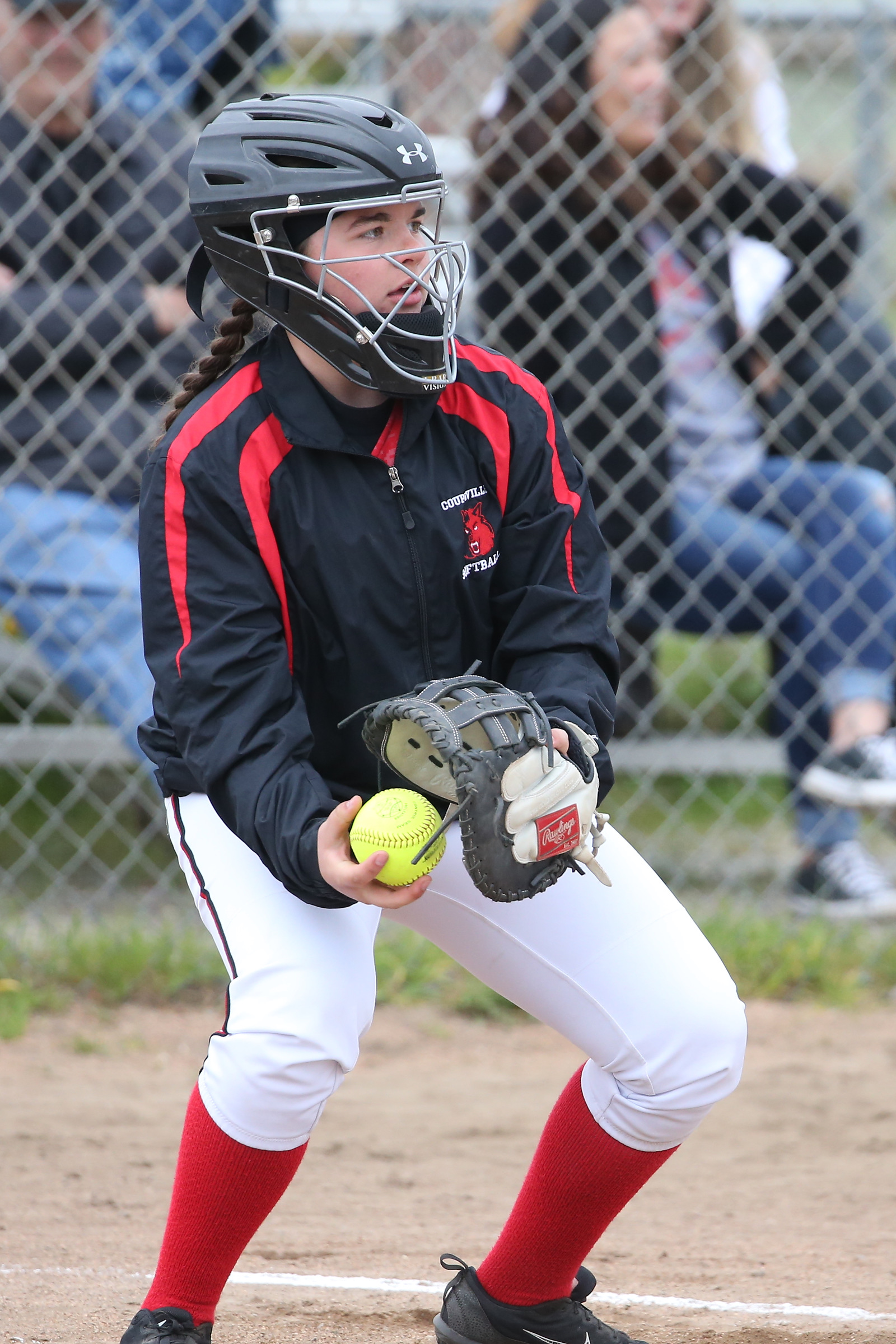Sophomore catcher Gavin Knoblich made two sterling defensive plays Monday as Coupeville nipped Chimacum 1-0 to move into a first-place tie. (Photos by JohnsPhotos.net)
