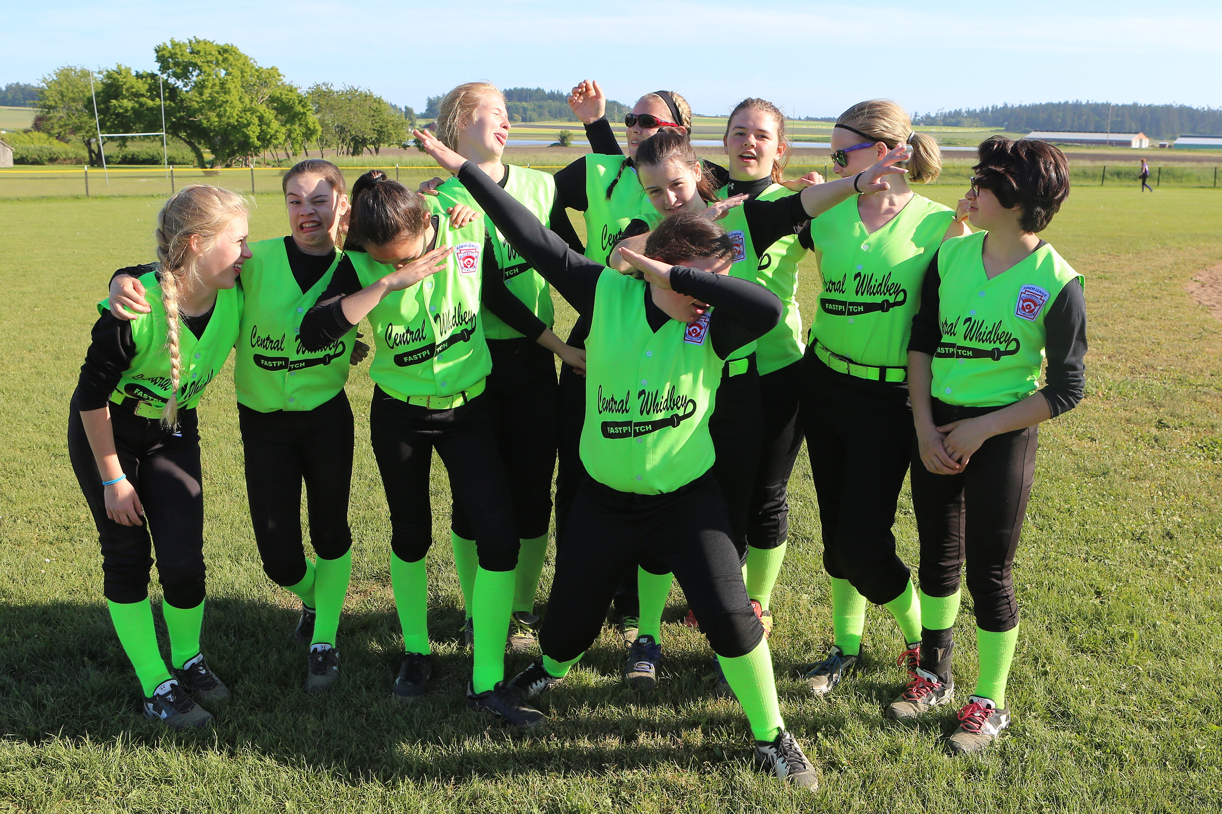 Pounding the ball to a merry tune Tuesday night, the Central Whidbey Little League Juniors softball squad rolled to a 10-5 win at Anacortes.