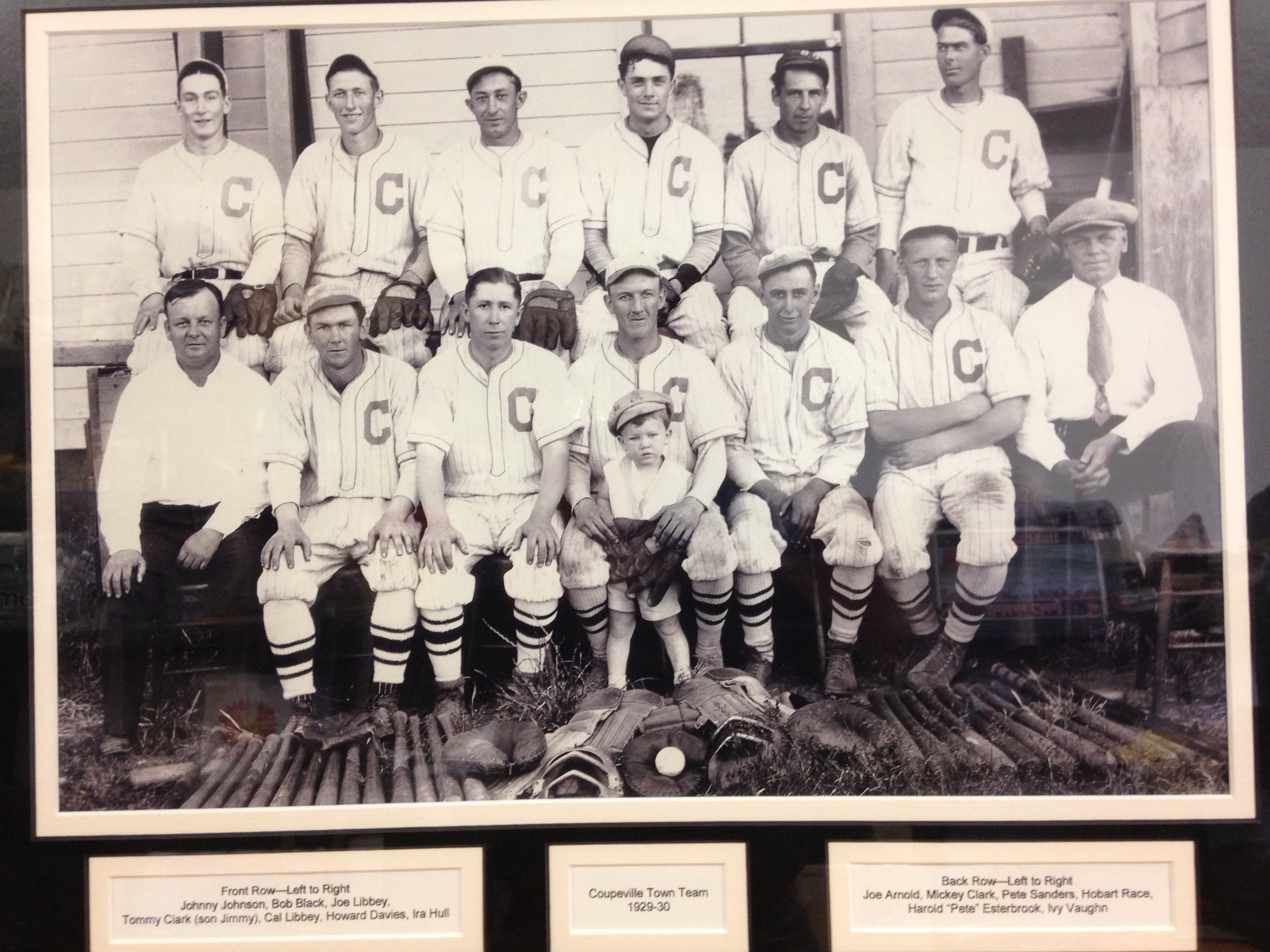The 1909 Fort Casey diamond men included their lil’ mascot, Tommy Clark, who grew up to be Dorothy’s dad and Renae’s grandpa.