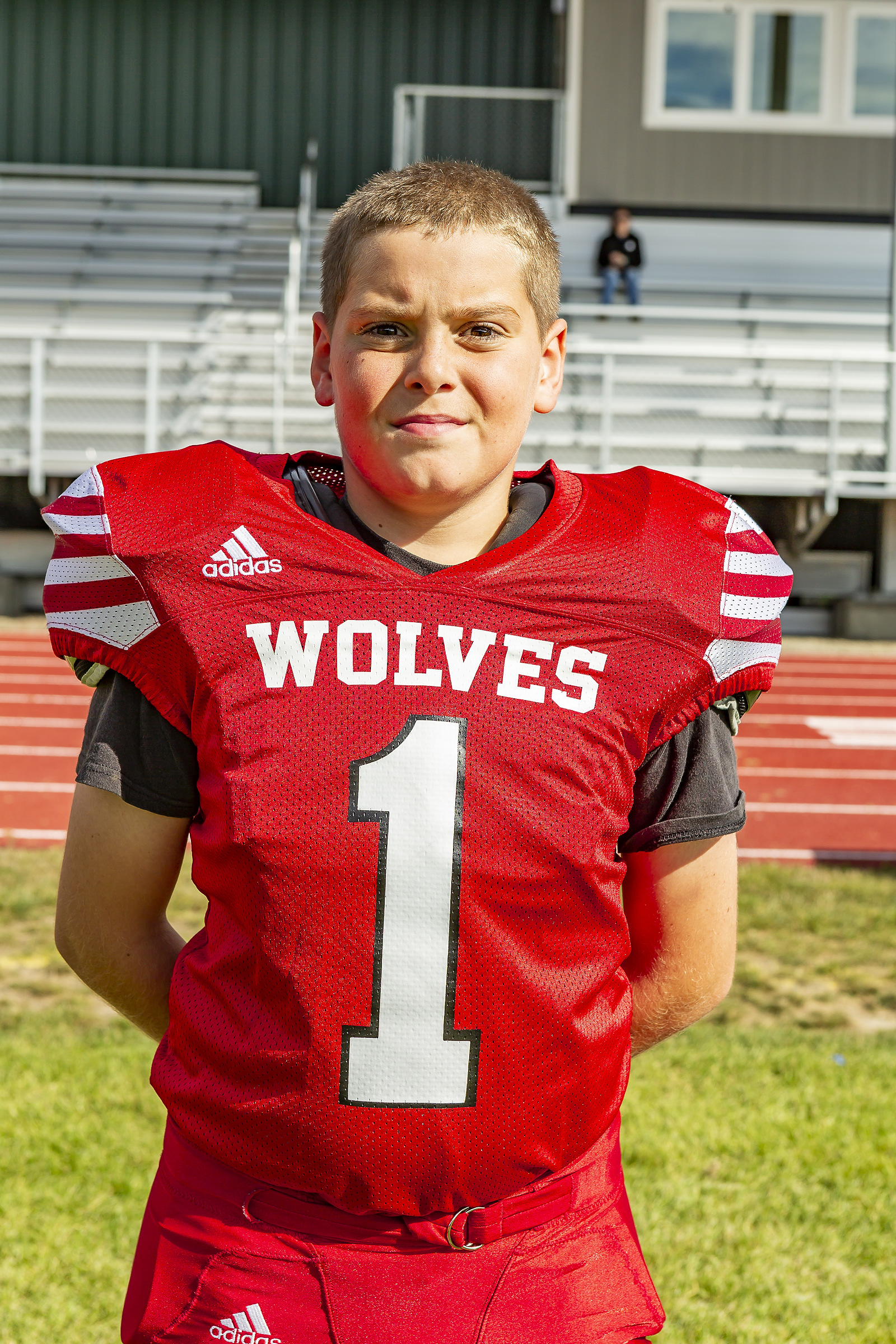 New Coupeville Middle School football coach Brett Casey (in red) has 14 players on his opening day roster. (Photo by JohnsPhotos.net)