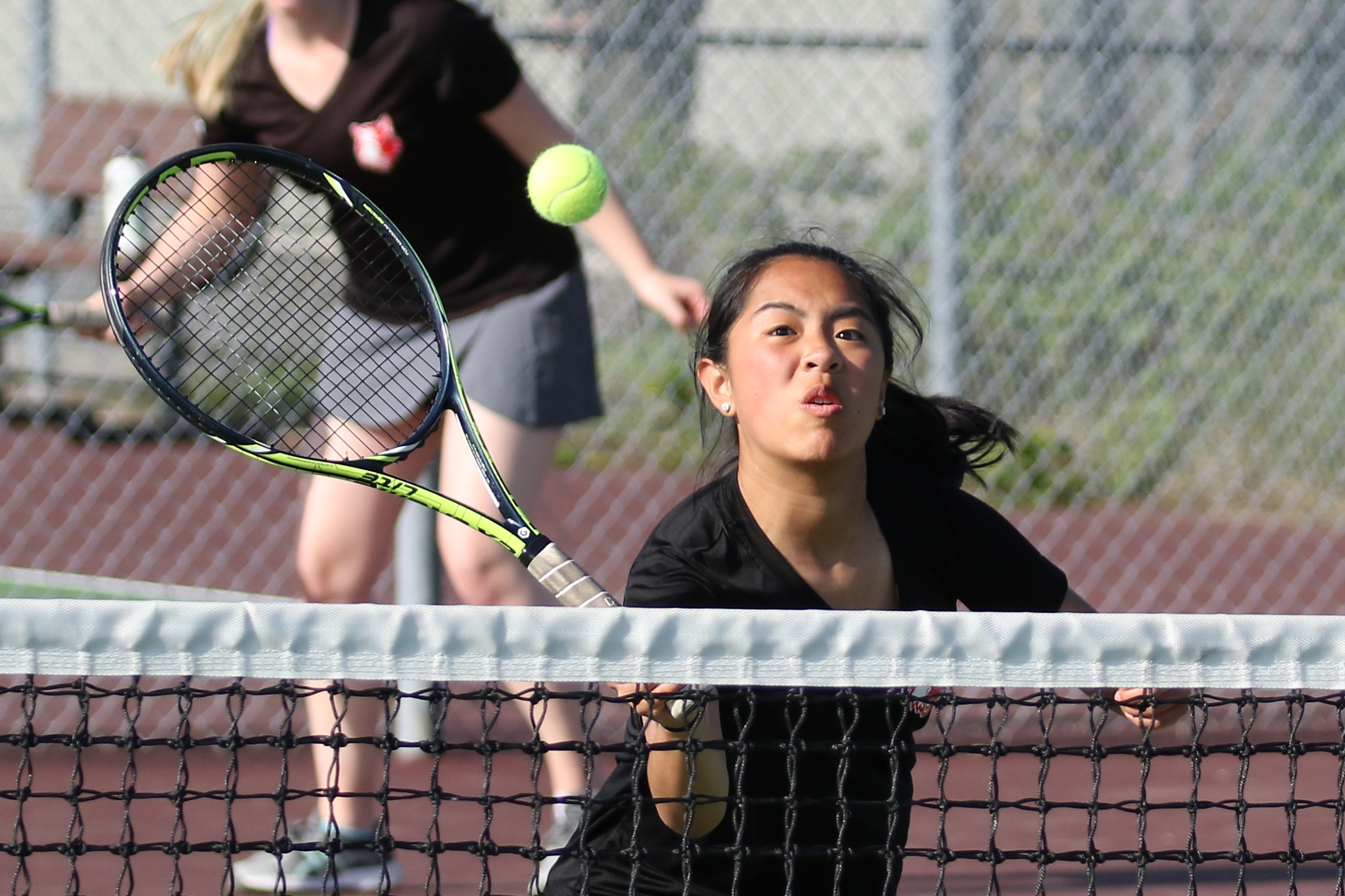 And, even though the result of their bout wouldn’t change the outcome of the team match (South Whidbey eventually won 4-1), the duos raged on against the dying sun.