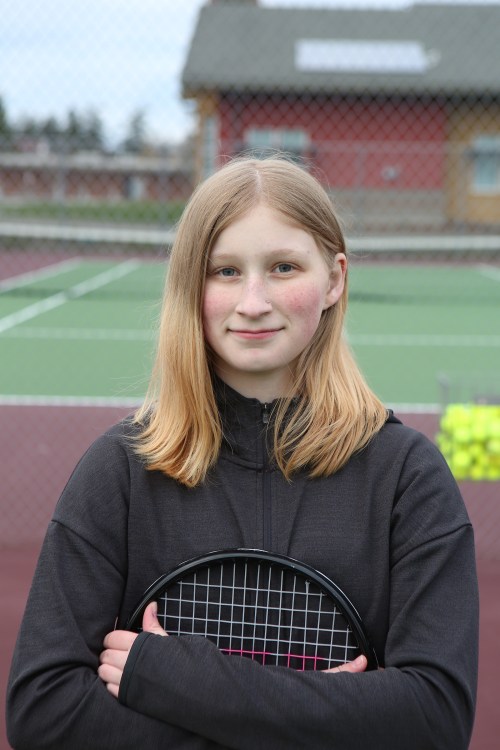 Elaira Nicolle teamed with Genna Wright Wednesday to win a match against South Whidbey. (Photo by JohnsPhotos.net)
