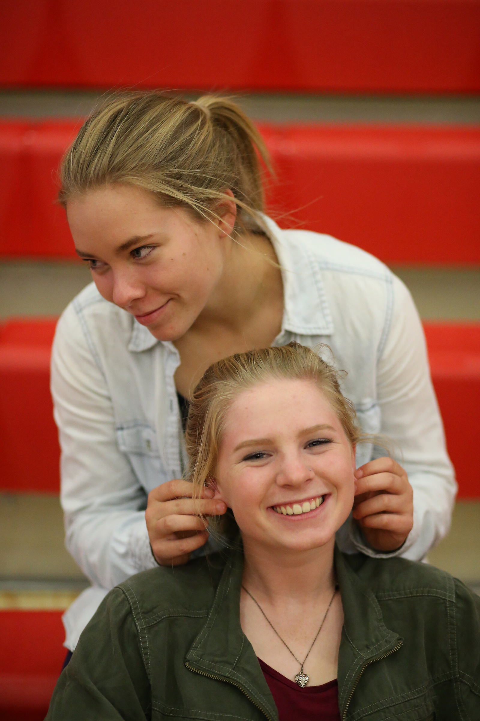 Vondrak hangs out with volleyball teammates Hannah Davidson (left) and Lucy Sandahl.