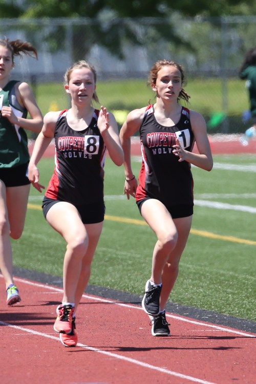 Wolf track stars Lucy Sandahl (8) and Mallory Kortuem are back to kick off spring sports. (Photo by JohnsPhotos.net)