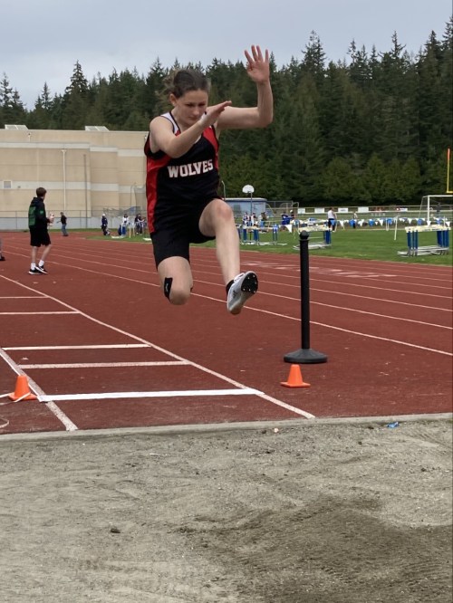 Competing in her first middle school track meet Wednesday, the Coupeville 6th grader captured wins in both the 100 and shot put.