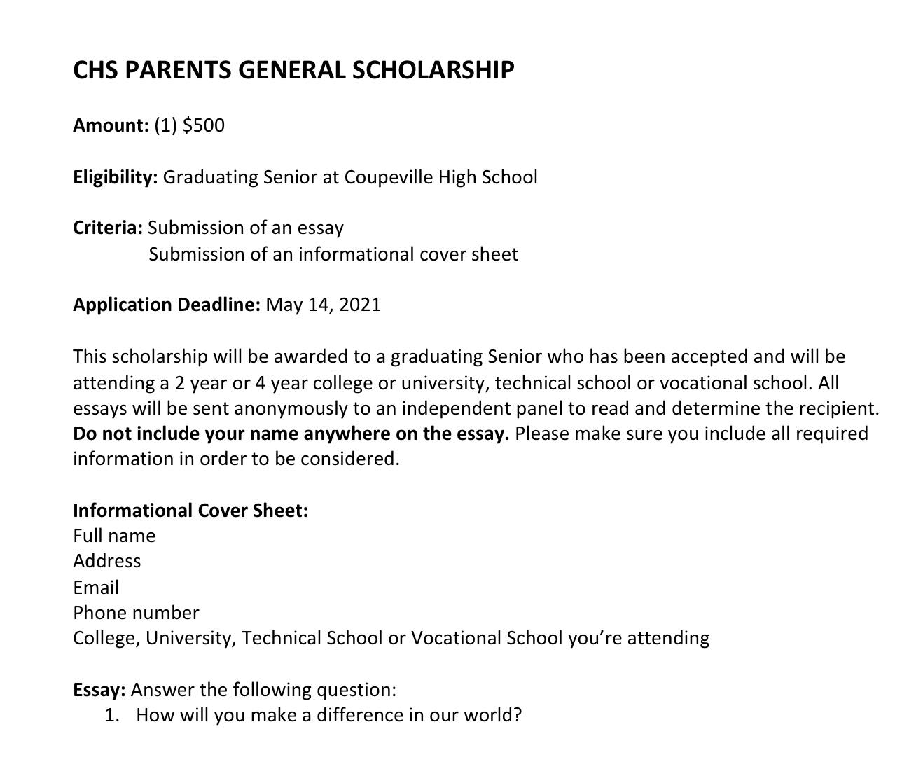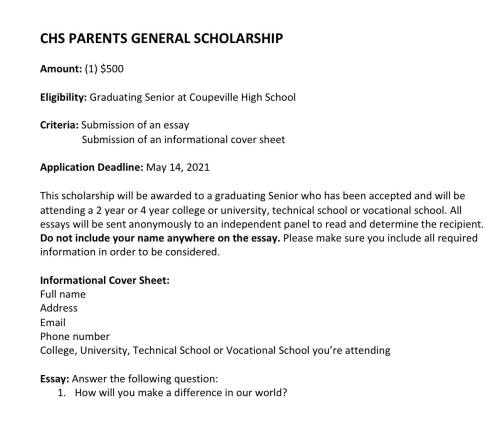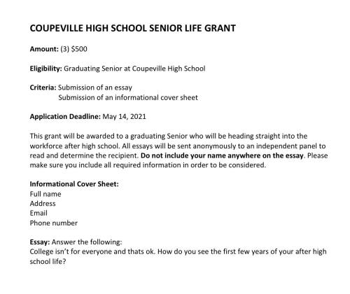 So here you go, ready to be laminated — the Coupeville High School Class of 2021.