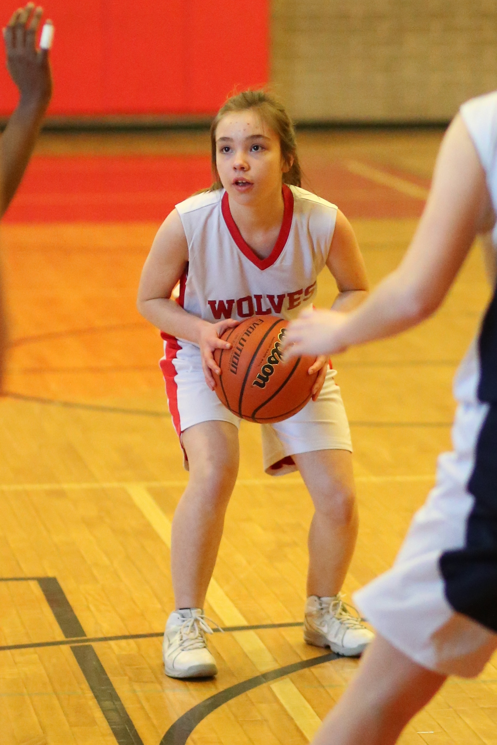 In the seventh grade game, the scoring was also split between four Wolves, with Anya Leavell leading the way with three points.