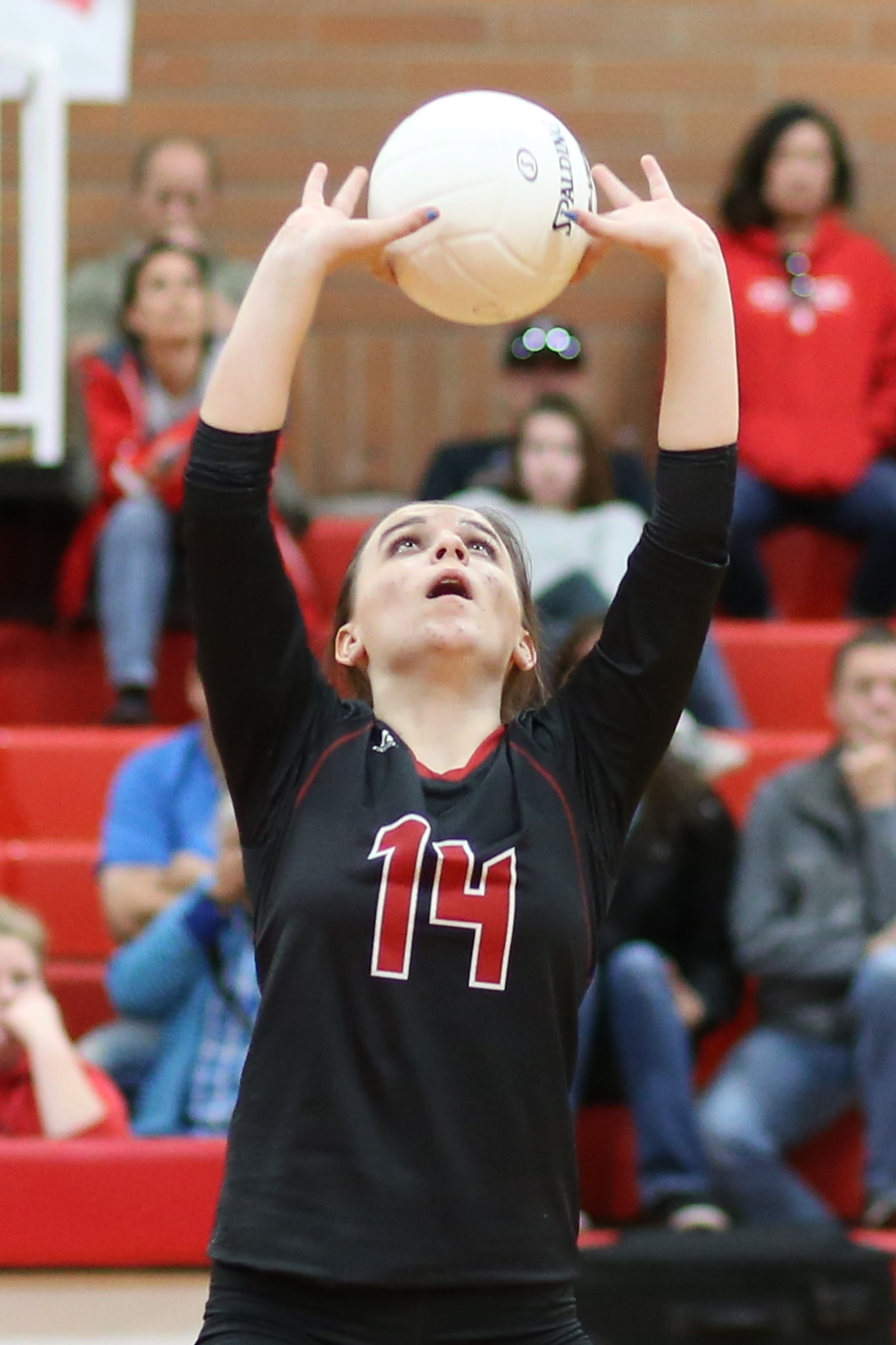 And, while Briscoe’s serves were crackin’ off elbows and fingers and slammin’ into the hardwood, she got plenty of aid from her hyped-up teammates.