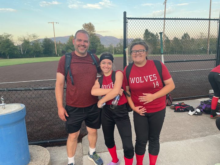 Wolf juniors Gwen Gustafson (middle) and Sofia Peters hang out with coach Lark Gustafson. (Paula Peters photo)