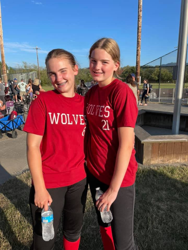 Coupeville High School softball sensations Izzy (left) and Savina Wells will be a senior and freshman, respectively, this coming school year. (Katy Wells photo)