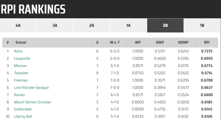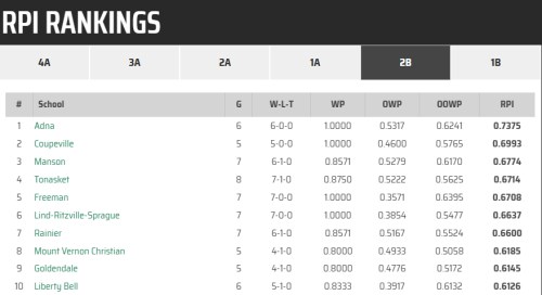 The Washington Interscholastic Activities Association released its first Rating Percentage Index (RPI) rankings Wednesday, and Coupeville High School is among the top 10 in both volleyball and football.