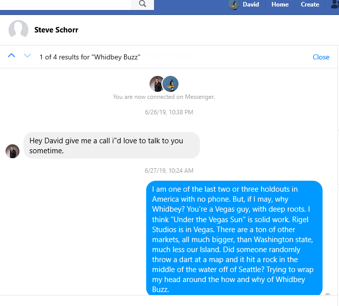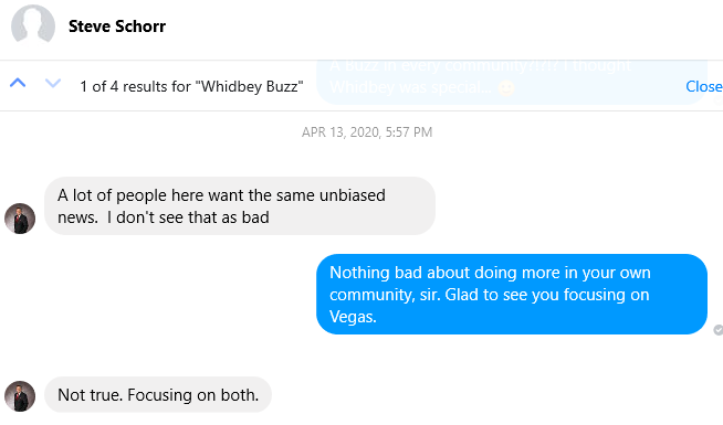 Schorr himself has been on Whidbey at least once since The Whidbey Buzz reared its head online, timed to Scott Thompson, a former Vegas resident, trying desperately to save his constantly-floundering Wright’s Crossing development.